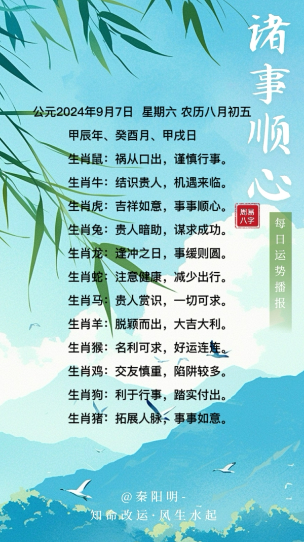 生肖每日运势(24年09月07日)