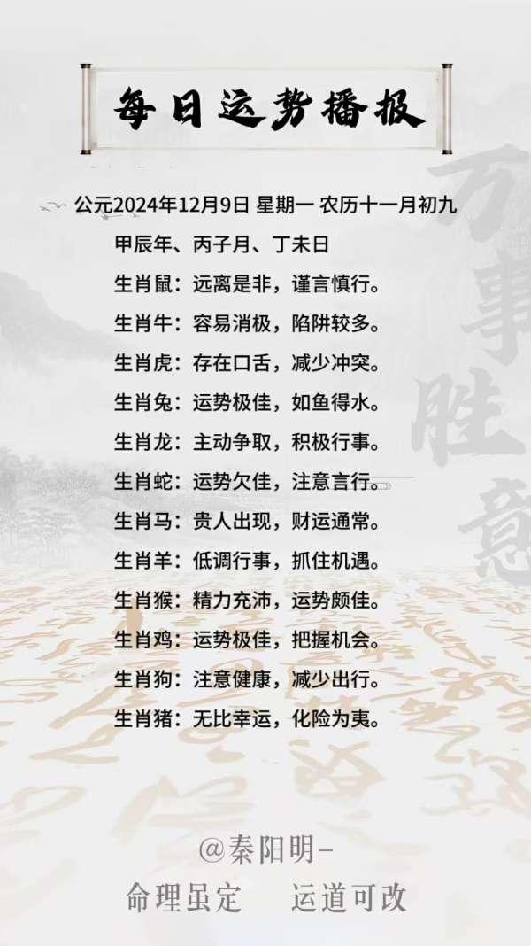 生肖每日运势(24年12月16日) 生肖每日运势(24年12月15日) 生肖每日运势(24年12月14日) 生肖每日运势(24年12月13日) 生肖每日运势(24年12月12日) 生肖每日运势(24年12月11日) 生肖每日运势(24年12月10日) 生肖每日运势(24年12月09日) 生肖每日运势(24年12月08日) 生肖每日运势(24年12月07日) 生肖每日运势(24年12月06日) 生肖每日运势(24年12月05日)