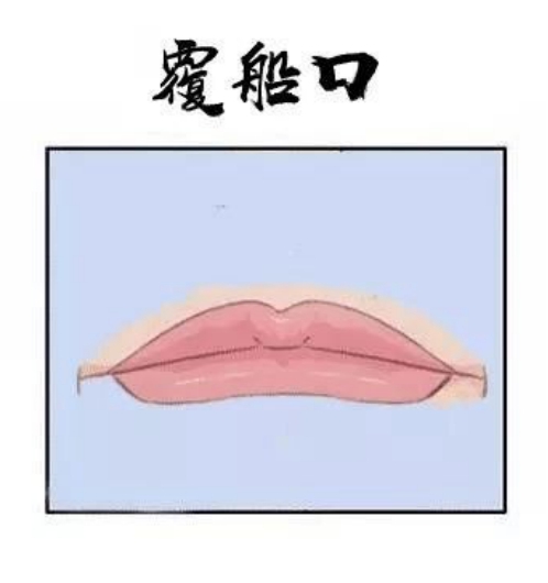 “口角浑如覆破船,两唇牛肉色相联,人逢此口多遭难,一生困苦不须言。”意思是说,像覆船口一样的唇形,嘴角下垂像覆舟,双唇暗红像牛肉的颜色。